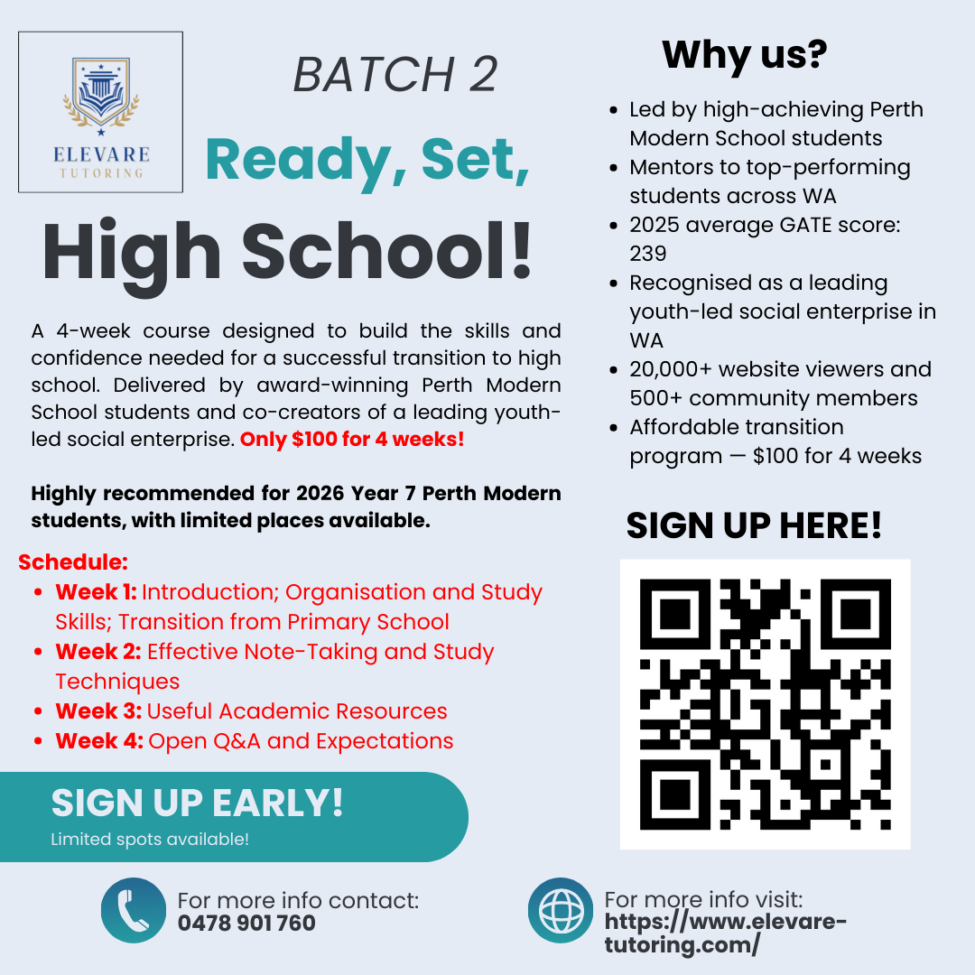 Elevare Education isn't just a business, it's a community of dedicated mentors and learners committed to giving every student in Australia the resources they need to thrive in a new environment. That's why we launched Elevare Initiatives: a series of free, accessible programs designed to support students and bridge the equity gap. You can support our mission by tuning in, getting involved, or following our socials - every contribution makes a difference. We're also looking for passionate students and mentors to join us. If you're interested in tutoring, mentoring, or contributing to the community through Elevare Initiatives, please fill out this form: forms.gle/jg9U7MDAgGi2wu9m9